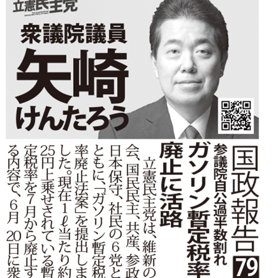 立憲民主党は、維新の会、国民民主、共産、参政、日本保守、社民の6党とともに、「ガソリン暫定税率廃止法案」を提出しました。現在1ℓ当たり約25円上乗せされている暫定税率を7月から廃止する内容で、6月20日に衆議院で可決されました。しかし、与党が過半数を占める参院で、財政金融委員会の三宅伸吾委員長(自民党)が、この法案を採決せずに散会しました。