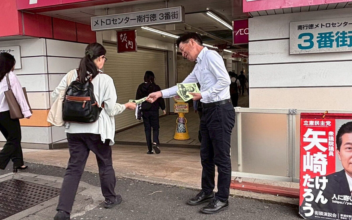 10/10の朝は南行徳駅西側南行徳メトロセンター3番街前で駅頭活動を行いました。