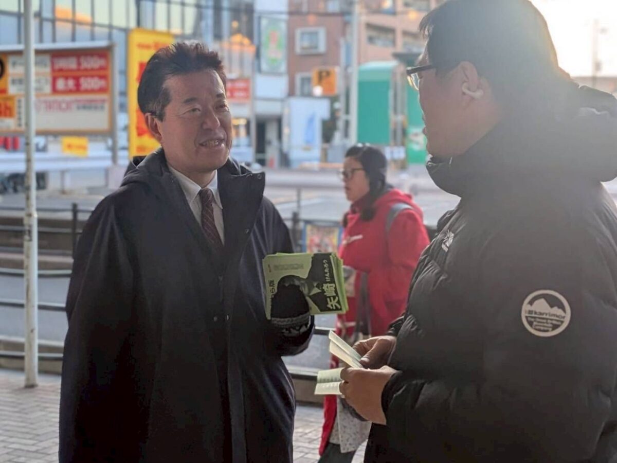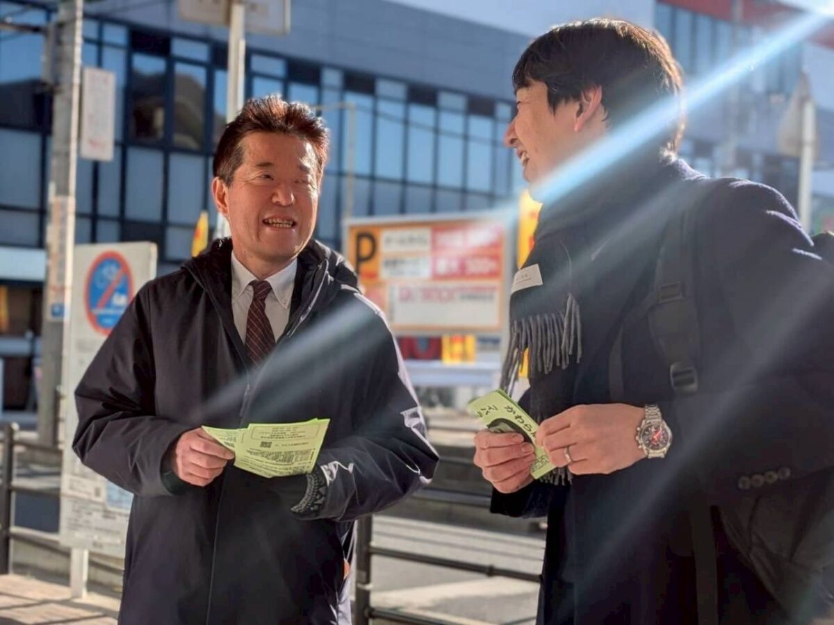 2/19朝は妙典駅南口で駅頭活動を行いました。