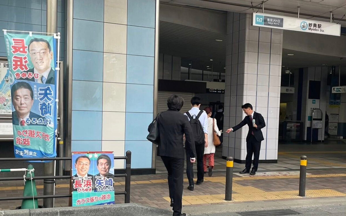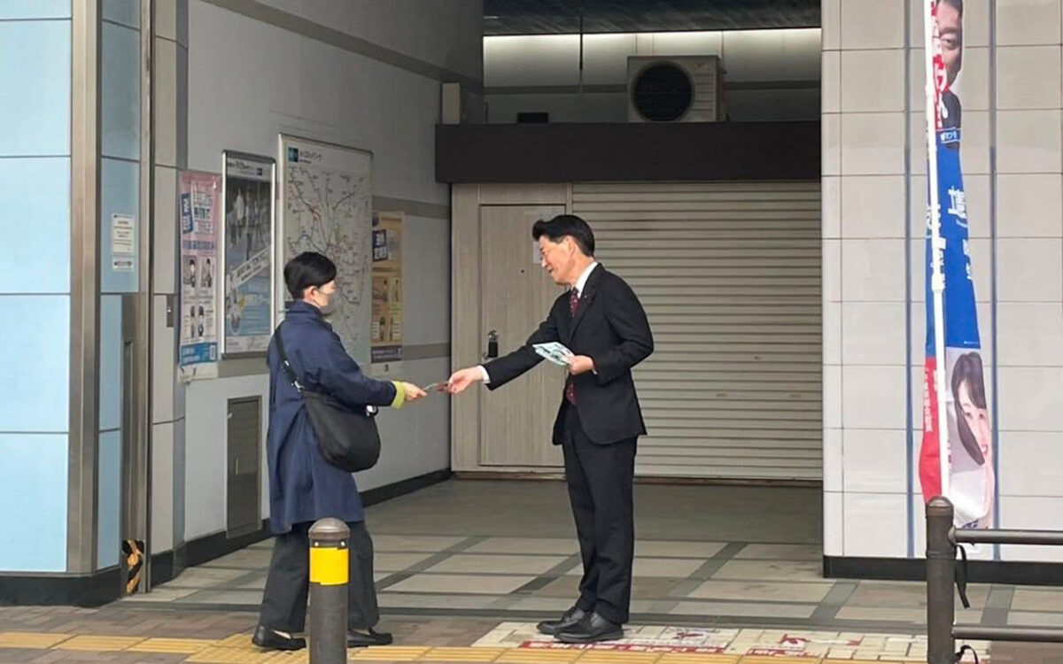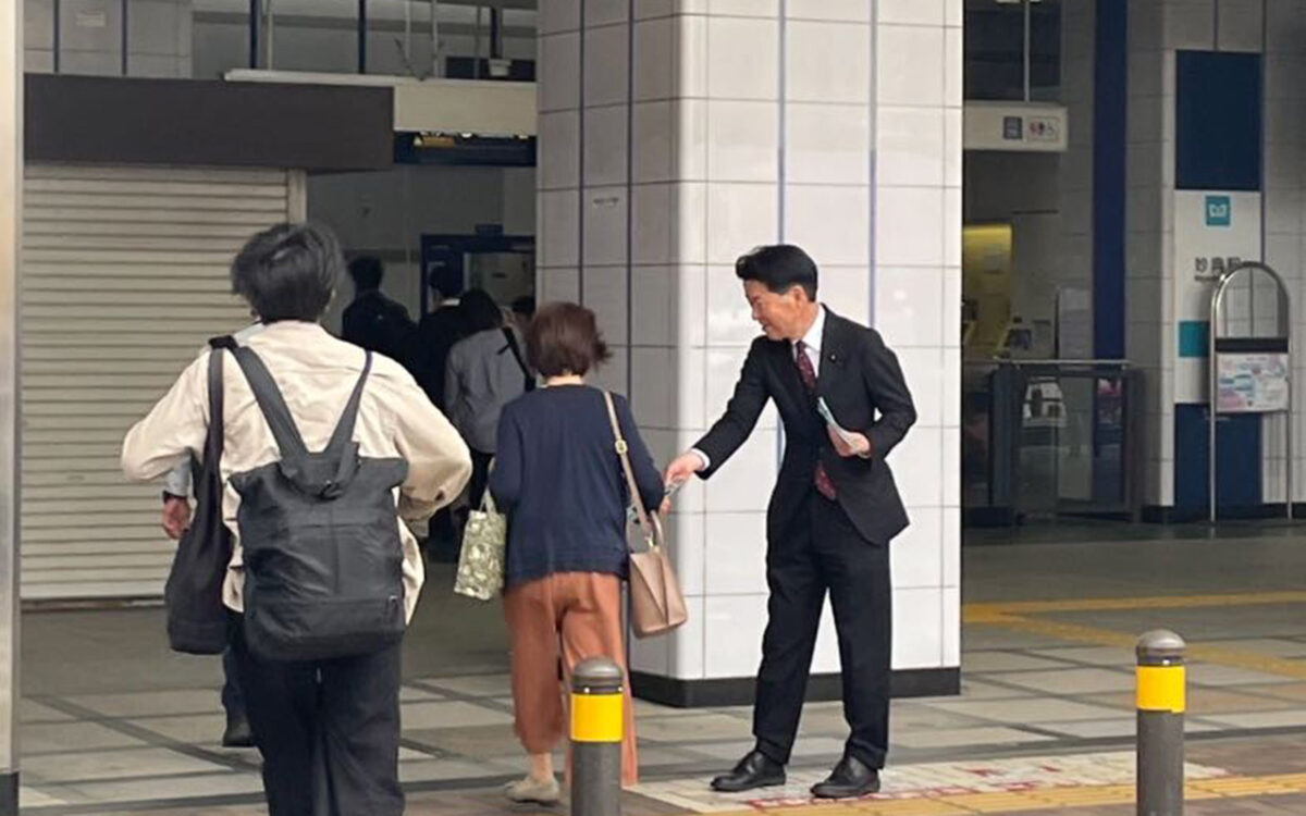 5/23の朝は妙典駅南口で駅頭活動を行いました。