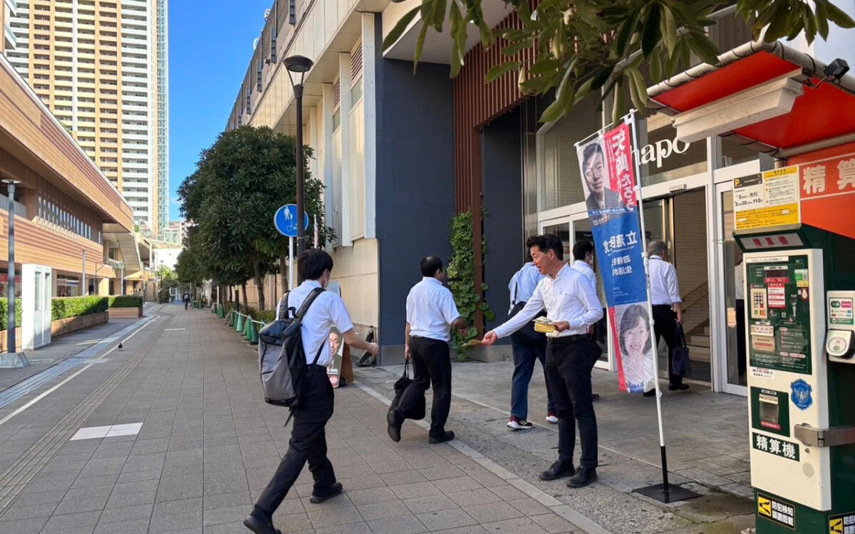 7/30の朝は市川駅シャポー南口で駅頭を行いました。