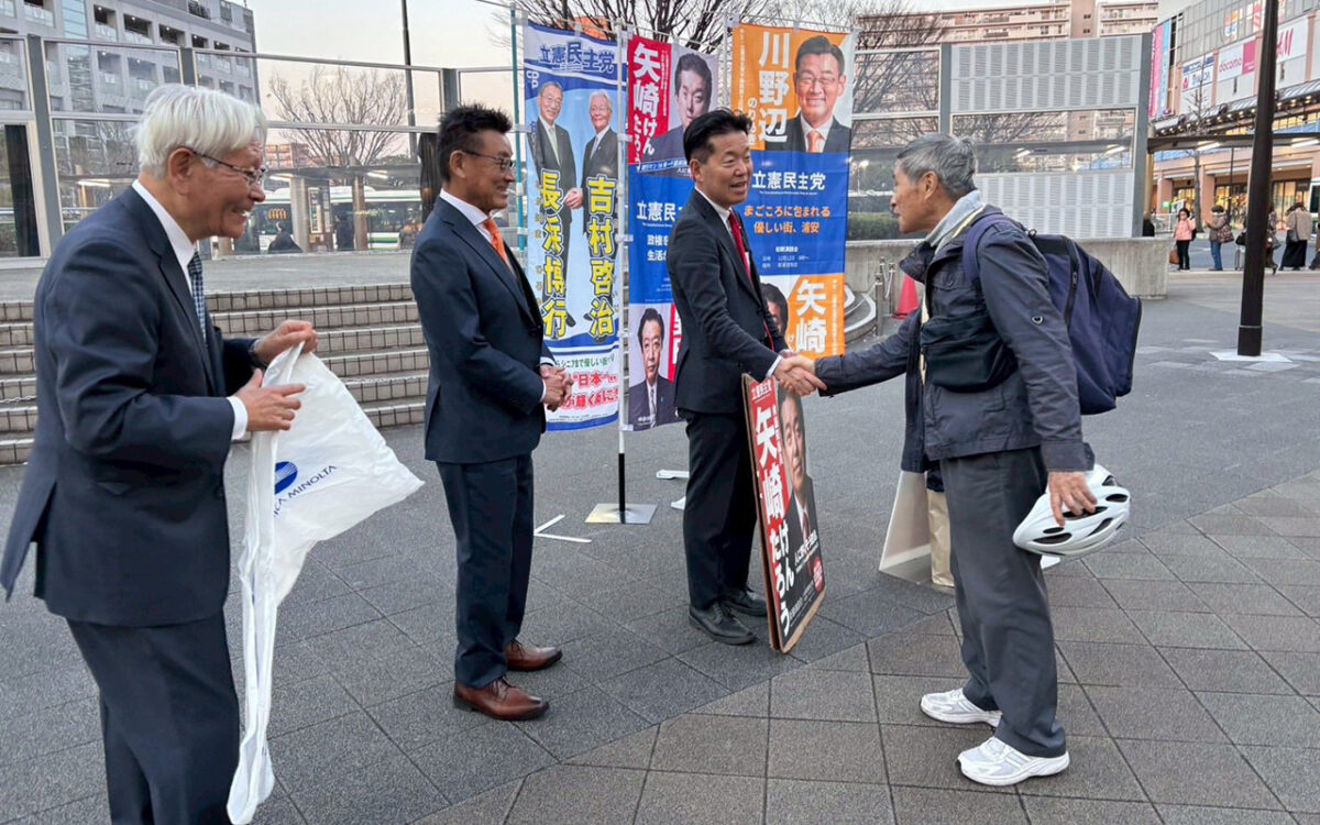 12月30日は「新浦安駅前広場」で、「吉村啓治」浦安市議、「川野辺のりあき」浦安市議と今年最後の「街頭演説」を行いました。