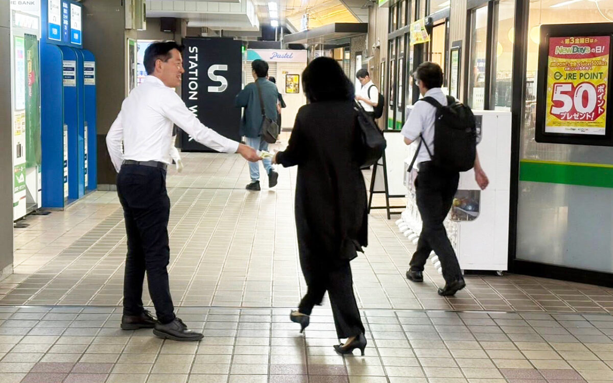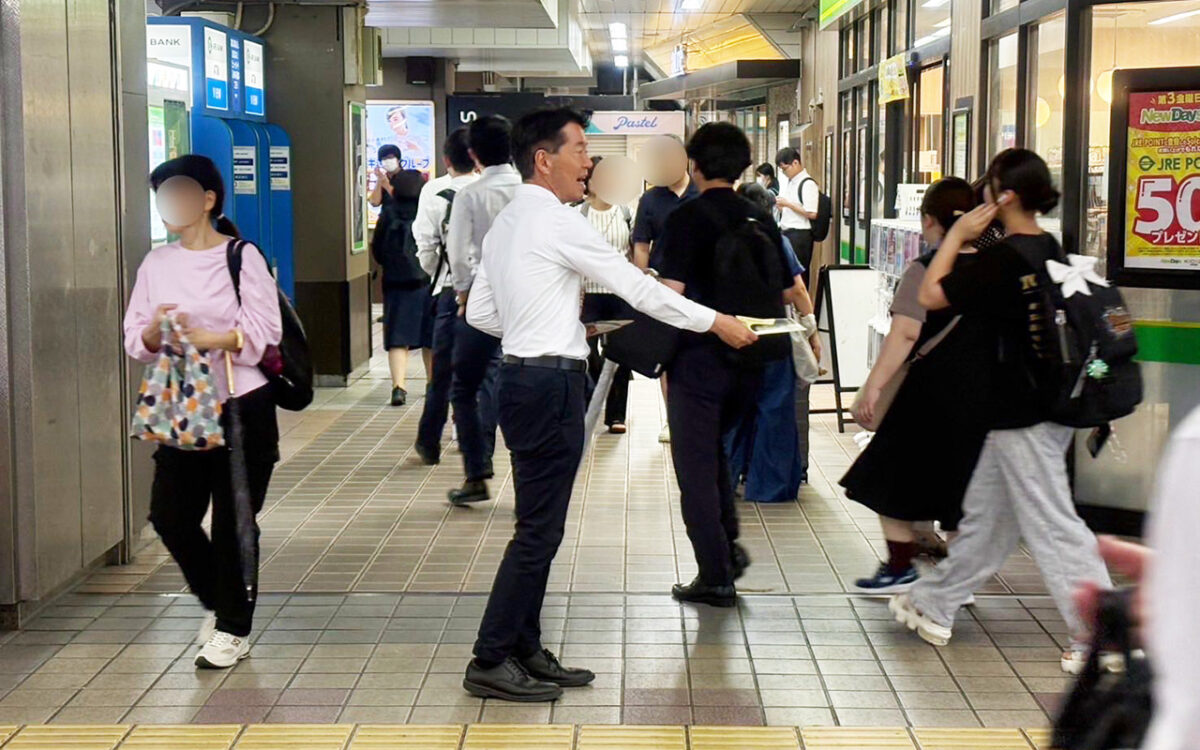 8/1の朝は新浦安駅北口で川野辺のりあき浦安市議と駅頭活動を行いました。