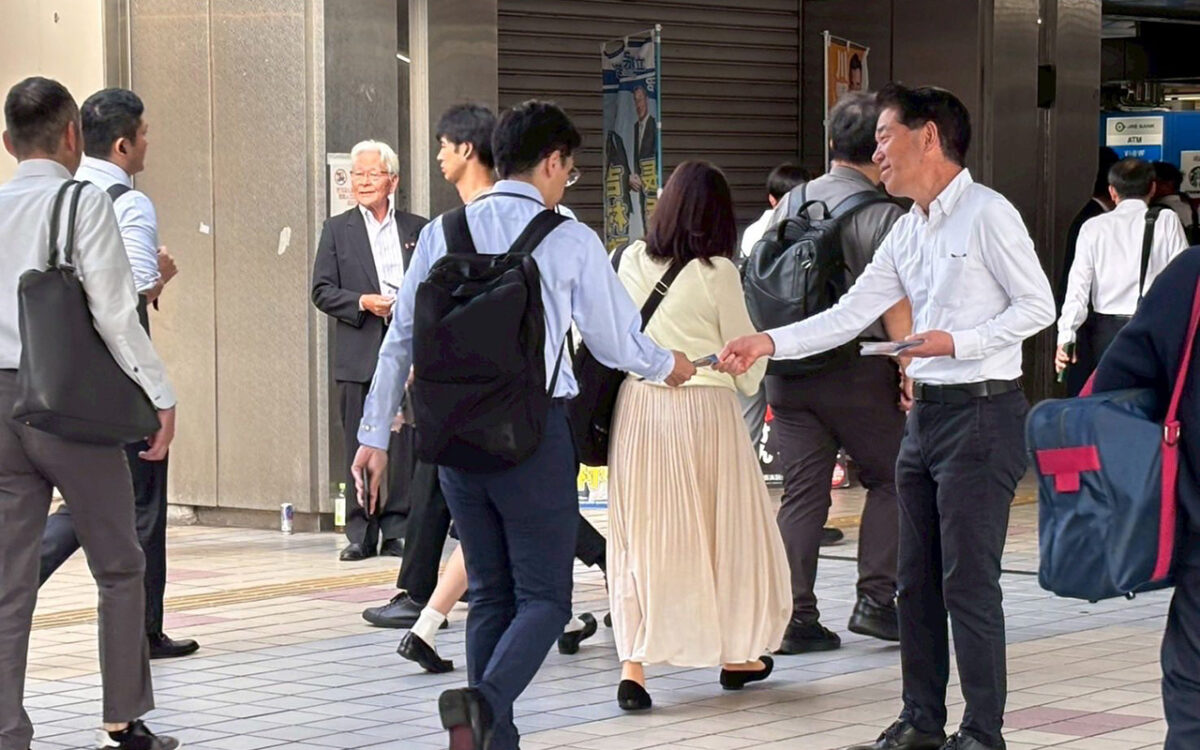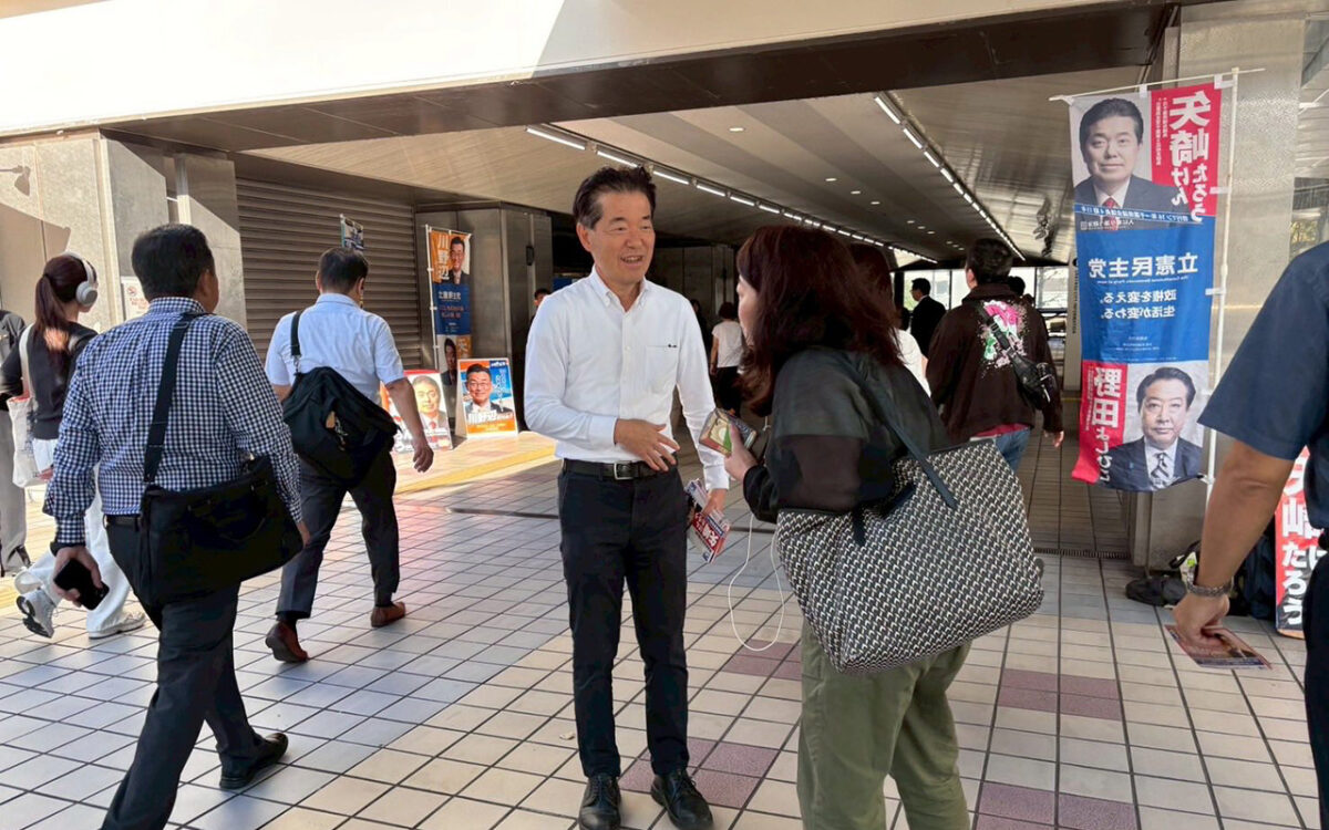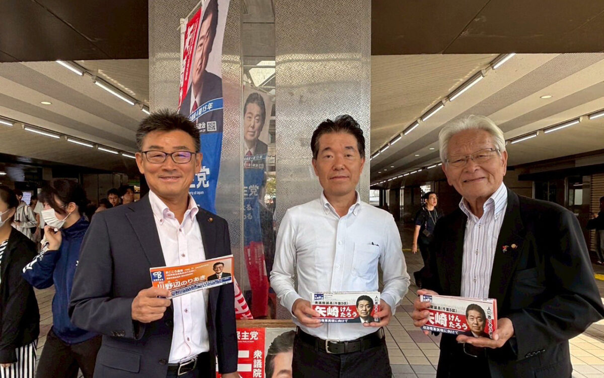 10/3の朝は新浦安駅南口で吉村啓治浦安市議、川野辺のりあき浦安市議と駅頭活動を行いました。