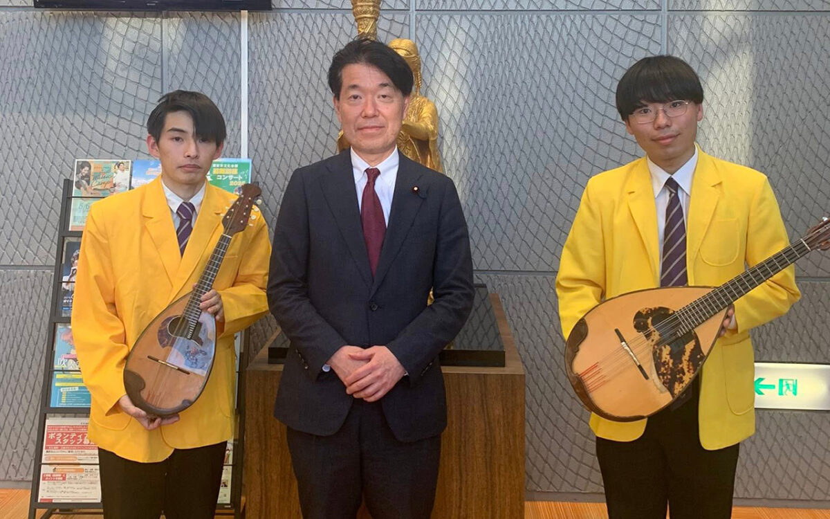 私も開演前にご挨拶をさせていただく機会をいただき、終演後にはマンドリン倶楽部第103代主将の三上颯太さん、コンサートマスターの山下優樹さんからお話を聞くこともできました。