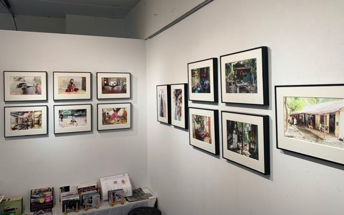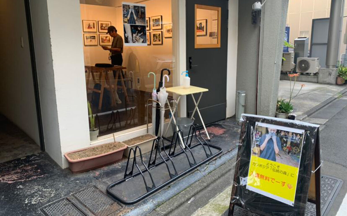 カンボジアの森で絹織物をしている皆さんの姿を写し出した写真展でした。