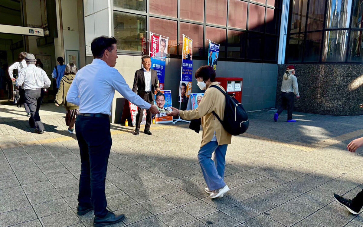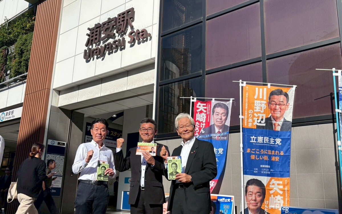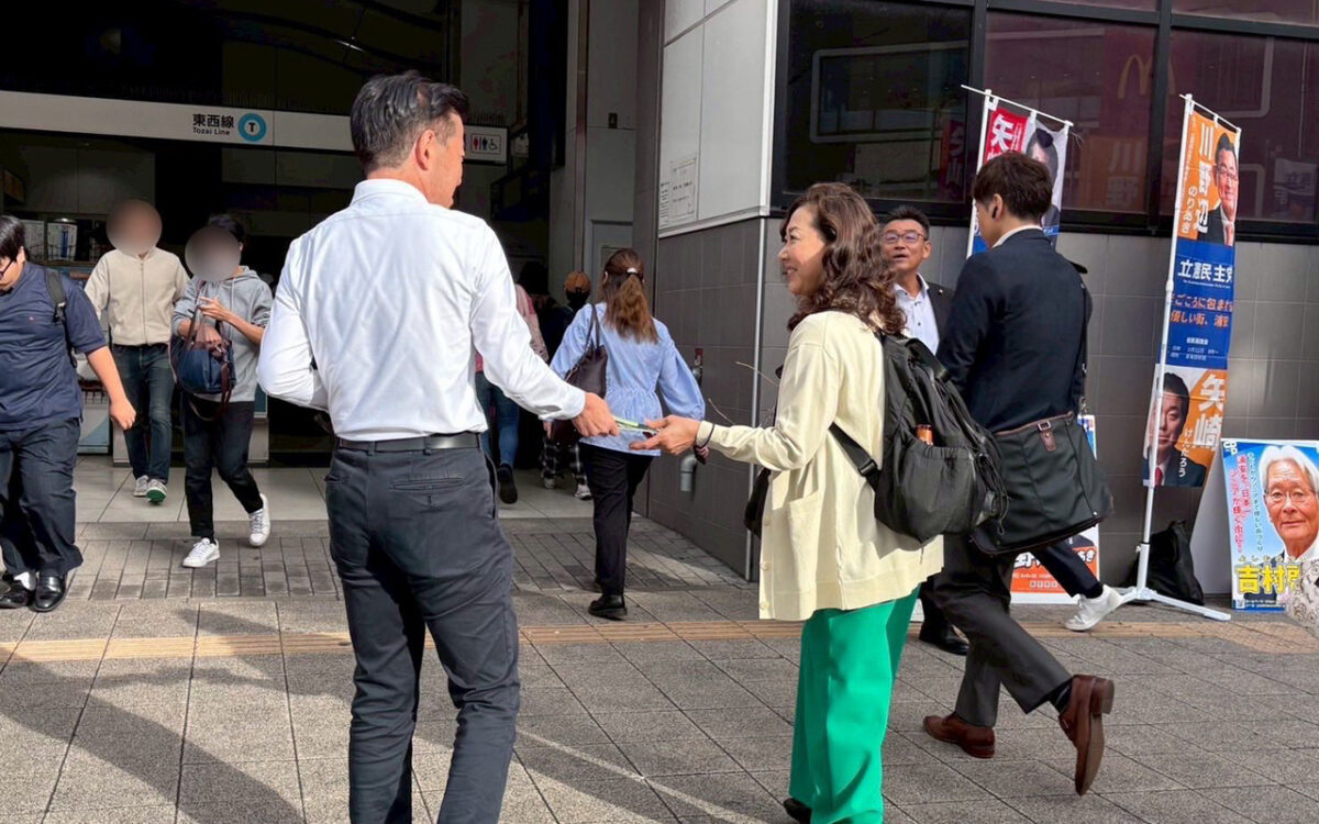 10/17の朝は浦安駅南口で吉村啓治浦安市議、川野辺のりあき浦安市議と駅頭活動を行いました。