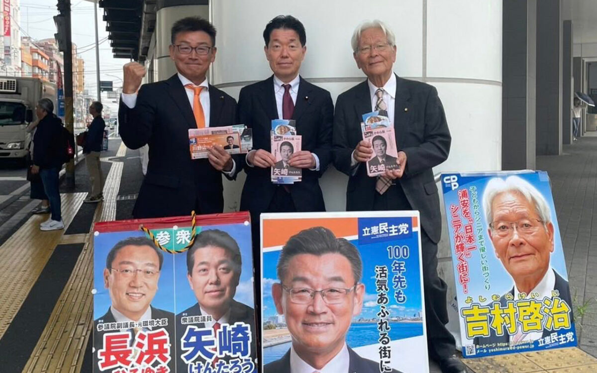 5/21の朝は浦安駅西口で、吉村啓治浦安市議、川野辺のりあき浦安市議と駅頭活動を行いました。
